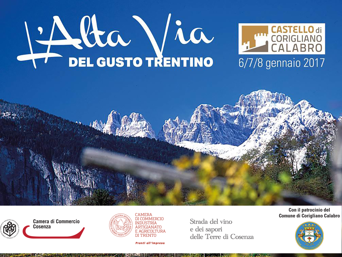 Domani 5 Gennaio 2017, presso il Castello Ducale di Corigliano alle 17:30 si terrà la Conferenza Stampa di apertura della mostra-degustazione "L'Alta Via del Gusto Trentino".