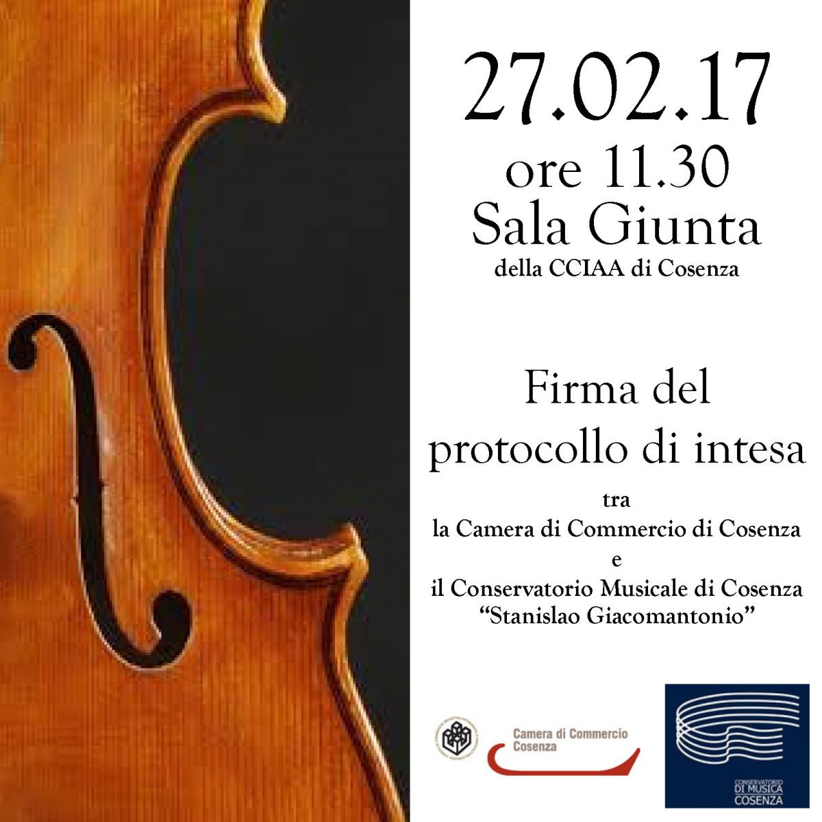 Il 27 febbraio 2017 alle 11:30 presso la Sala Giunta dell'Ente Camerale verrà siglato ufficialmente detto protocollo di intesa tra la Camera di Commercio di Cosenza ed il Conservatorio di Cosenza "Stanislao Giacomantonio".