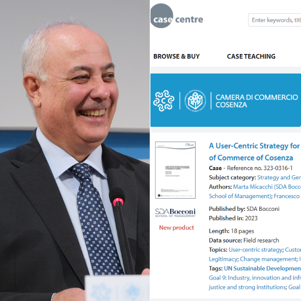 Proprio SDA Bocconi, con i professori Giovanni Valotti, Marta Micacchi e Francesco Vidè, ha curato la realizzazione della ricerca sul campo intitolata “Una strategia user-centric per la creazione di valore pubblico: il caso della Camera di Commercio di Cosenza” proponendone l’inserimento nella banca dati nella categoria “Strategy and General Management” destinata a corsi di formazione post-laurea ed executive.