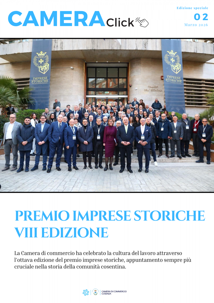 La Camera di Commercio di Cosenza è lieta di presentarti CameraClick, la newsletter che ti porta nel mondo di #OpenCameraCosenza con un semplice click.
