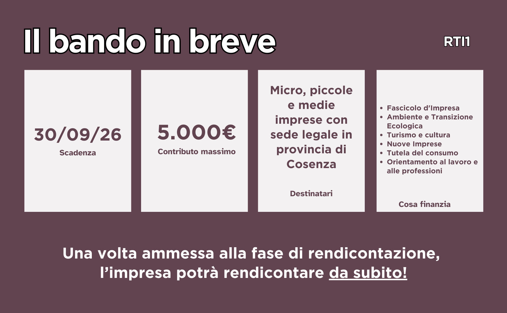 • Micro, piccole e medie imprese con sede legale in provincia di Cosenza