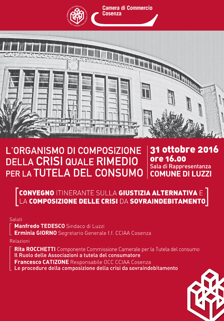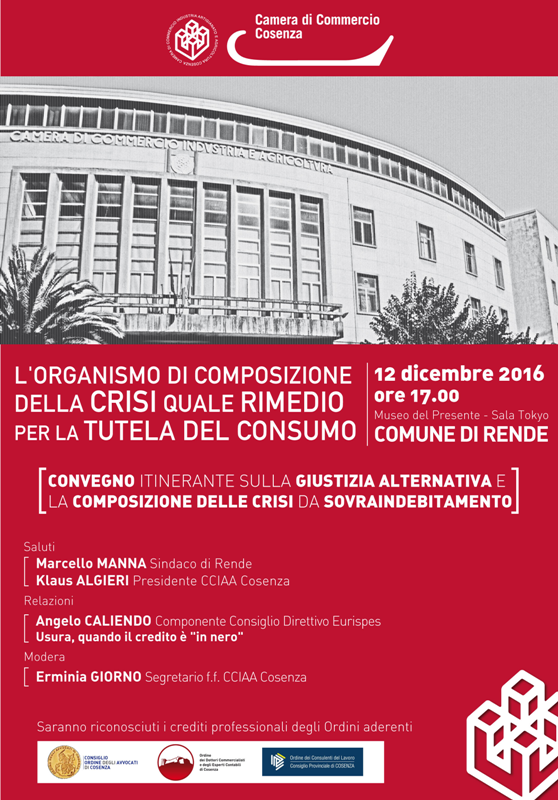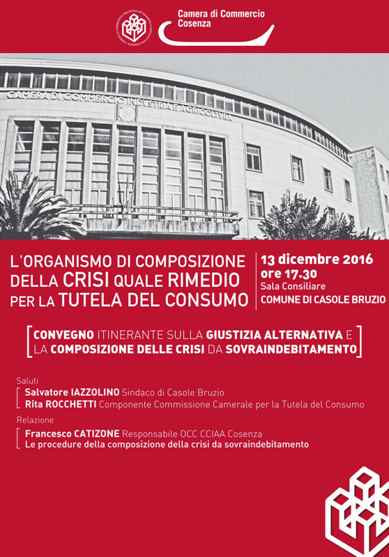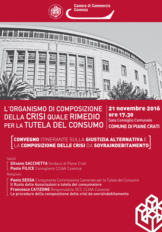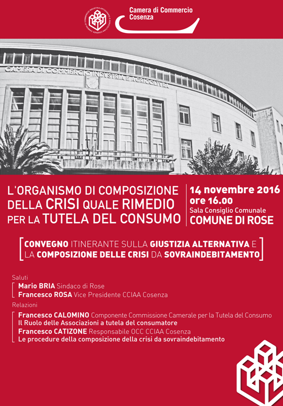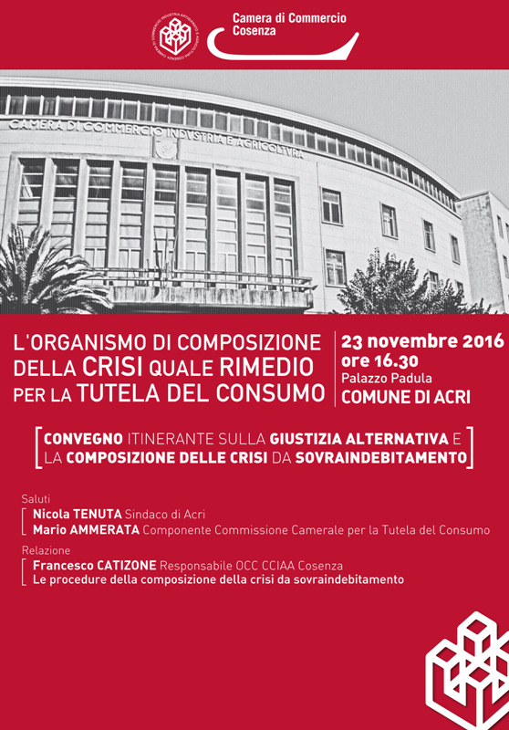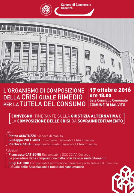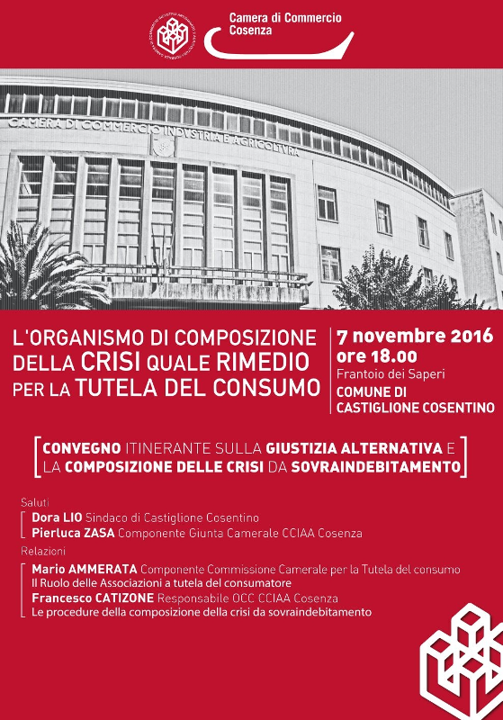 Allo scopo di promuovere la conoscenza dell'Organismo di Composizione della Crisi, la Camera di Commercio di Cosenza, ha organizzato una serie di convegni itineranti.