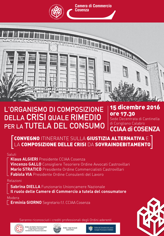 Giovedì 15 dicembre 2016 alle ore 17:30 presso la Sede decentrata della Camera di Commercio in Cantinella di Corigliano Calabro (CS).