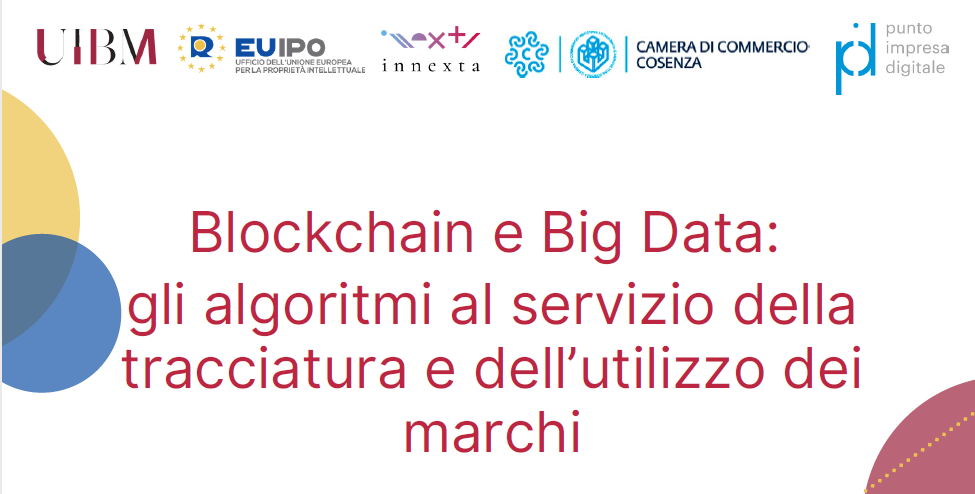 Giovedì 30 luglio dalle ore 10:00 alle ore 12:00, Innexta – Consorzio Camerale per il Credito e la Finanza in collaborazione con l’Ufficio dell'Unione europea per la proprietà intellettuale, l’Ufficio Italiano Brevetti e Marchi e la Camera di Commercio di Cosenza, organizza un webinar dal titolo: “Blockchain e big data: gli algoritmi al servizio della tracciatura e dell’utilizzo dei marchi”.