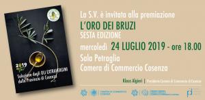 Il 24.07.2019 alle ore 18,00 presso la Sala Petraglia della Camera di Commercio di Cosenza si terrà l’annuale appuntamento con la premiazione della VI edizione del concorso “Oro dei Bruzi 2019” e la presentazione della relativa “Guida ai migliori extravergini della provincia di Cosenza 2019".
