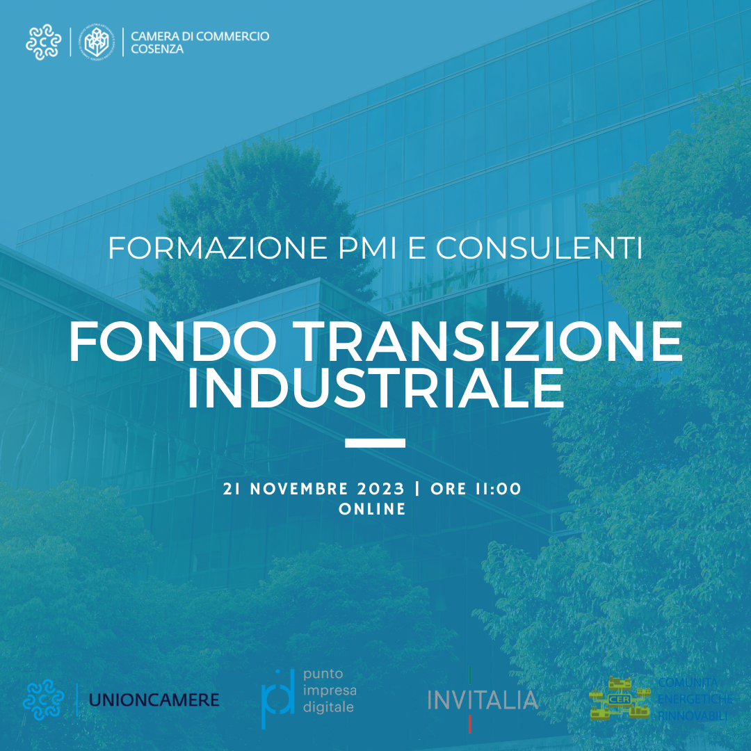 Per maggiori informazioni consulta la pagina dedicata all'appuntamento: https://www.cs.camcom.gov.it/it/content/service/fondo-transizione-industriale-webinar-di-approfondimento-sulla-misura
