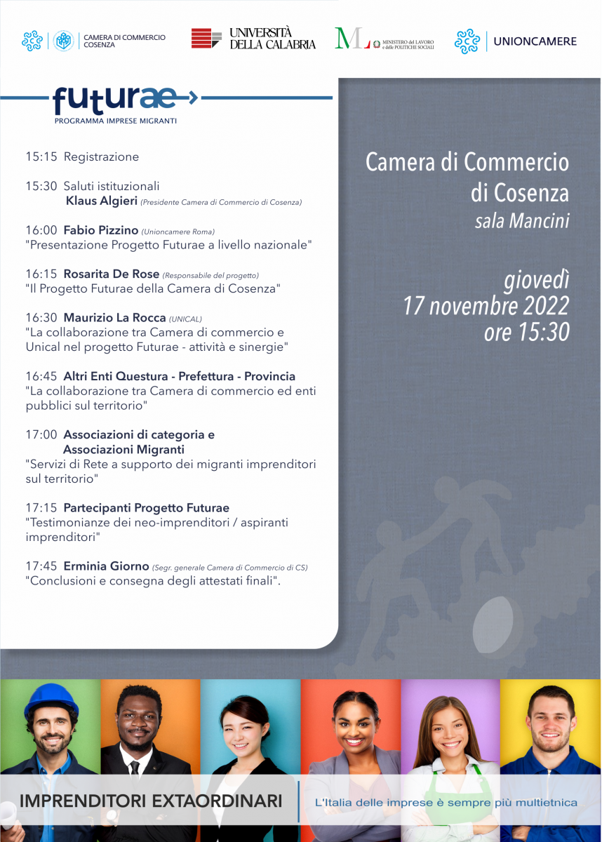 Al fine di sostenere la creazione, lo sviluppo e il consolidamento dell’imprenditoria migrante, la Camera di Commercio di Cosenza partecipa al programma FUTURAE – Imprenditoria di migranti.
