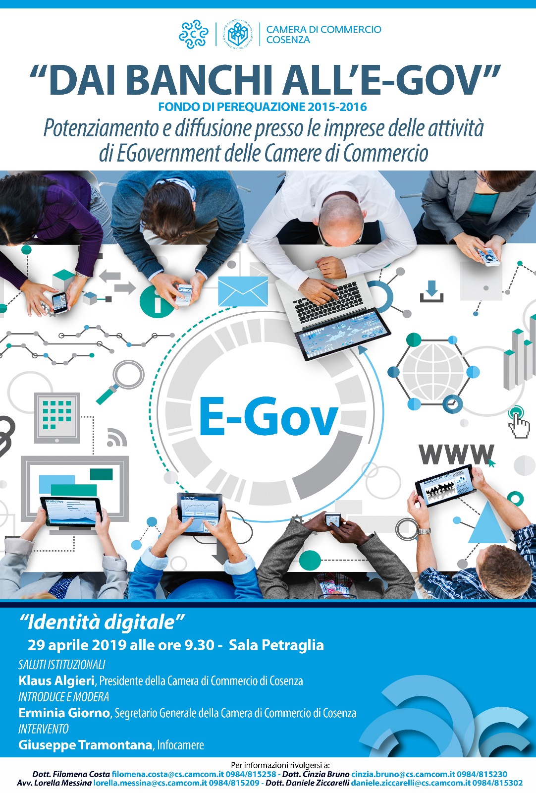 Il prossimo 29 Aprile alle 9.30 presso la sala Petraglia della Camera di Commercio di Cosenza si terrà l'evento "Identità digitale” dedicato al potenziamento e alla diffusione degli strumenti di e-government a disposizione delle imprese e i cittadini.