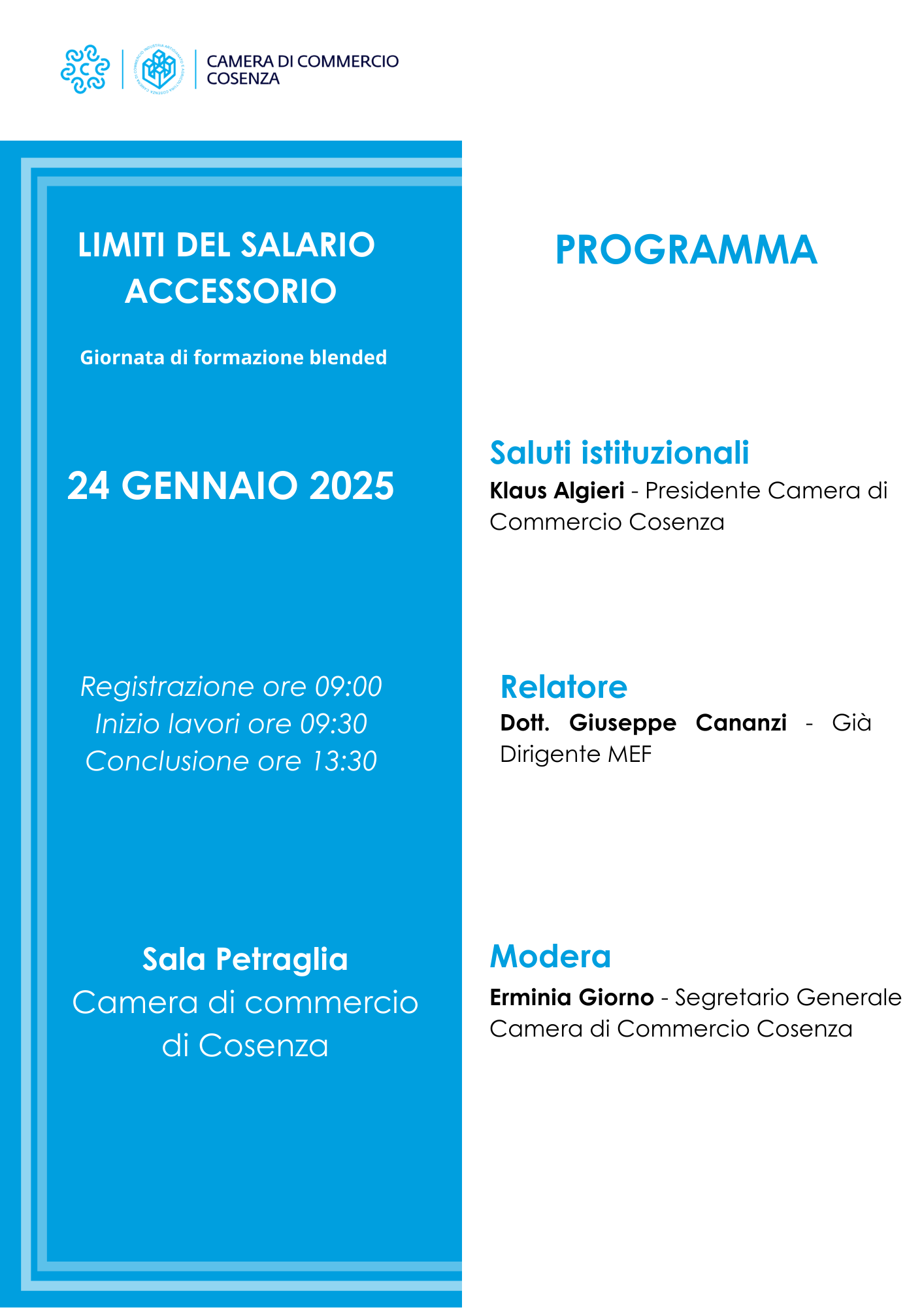 Il prossimo 24 gennaio alle ore 09:30 andrà in scena in Sala Petraglia la giornata di formazione blended con il Dott. Giuseppe Cananzi, già Dirigente MEF.