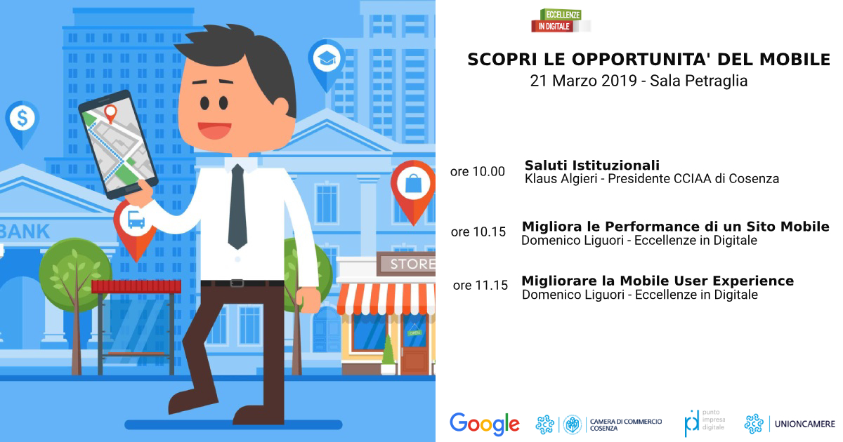 Il 21 Marzo 2019 alle ore 10 presso la Sala Petraglia si terrà l'incontro dedicato alle imprese che intendono conoscere e sfruttare per il proprio business le opportunità del Mobile.