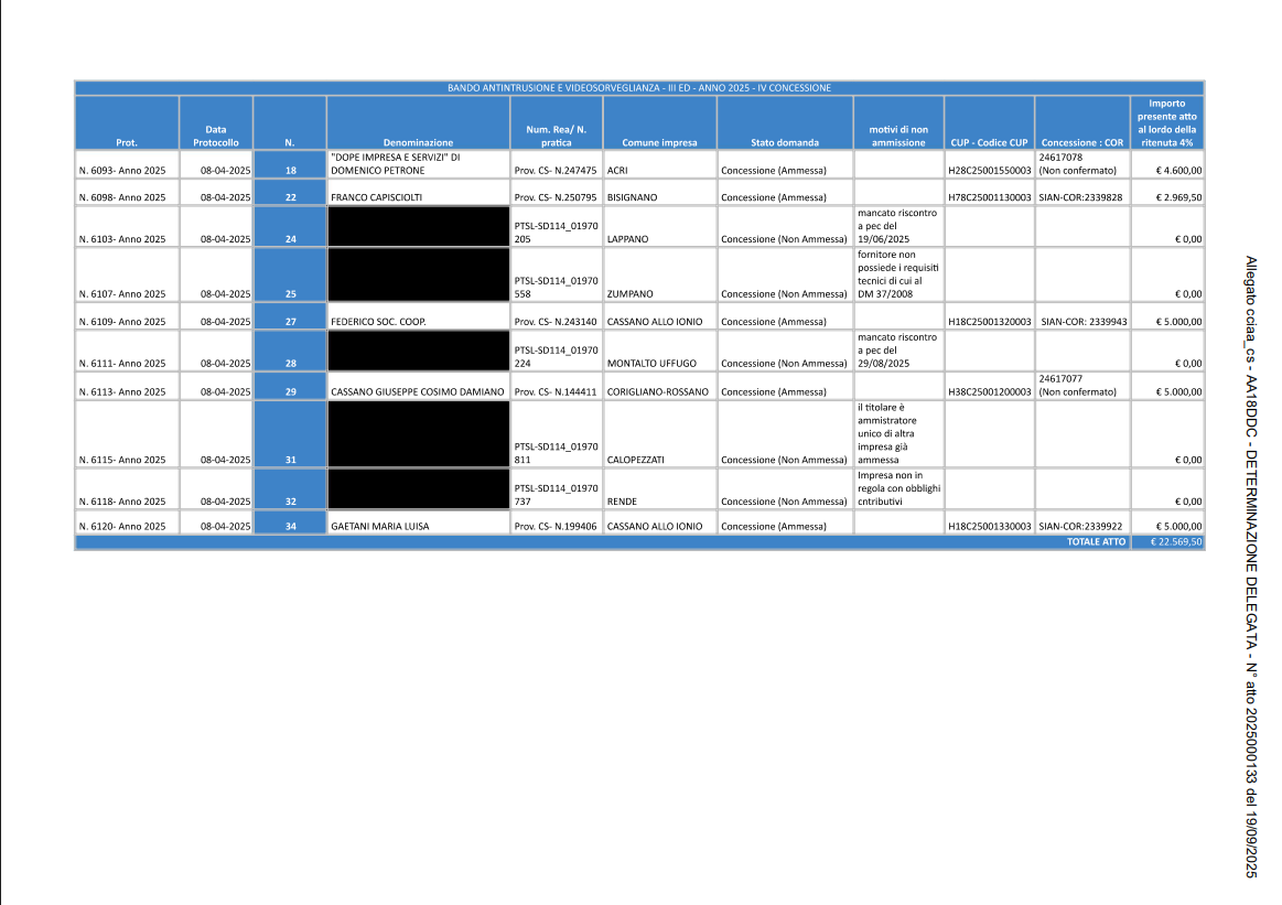 05 BANDO VIDEO SORVEGLIANZA DIGITALE III VDS3 DD 63 del 22/05/2025 DD 80 del 13/06/2025 DD 91 del 30/06/2025 DD 133 del 19/09/2025 DD 140 del 10/10/2025 DD 162 del 14/11/2025 DD 178 del 04/12/2025