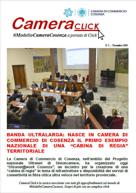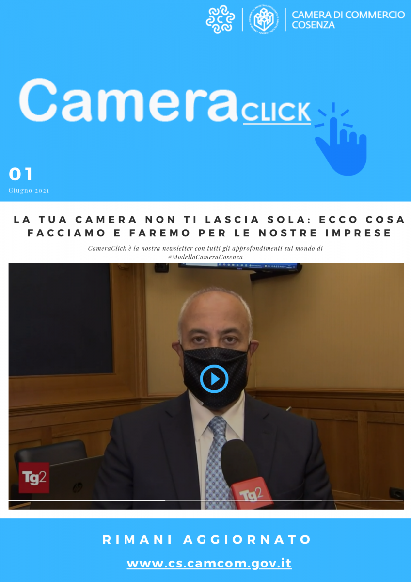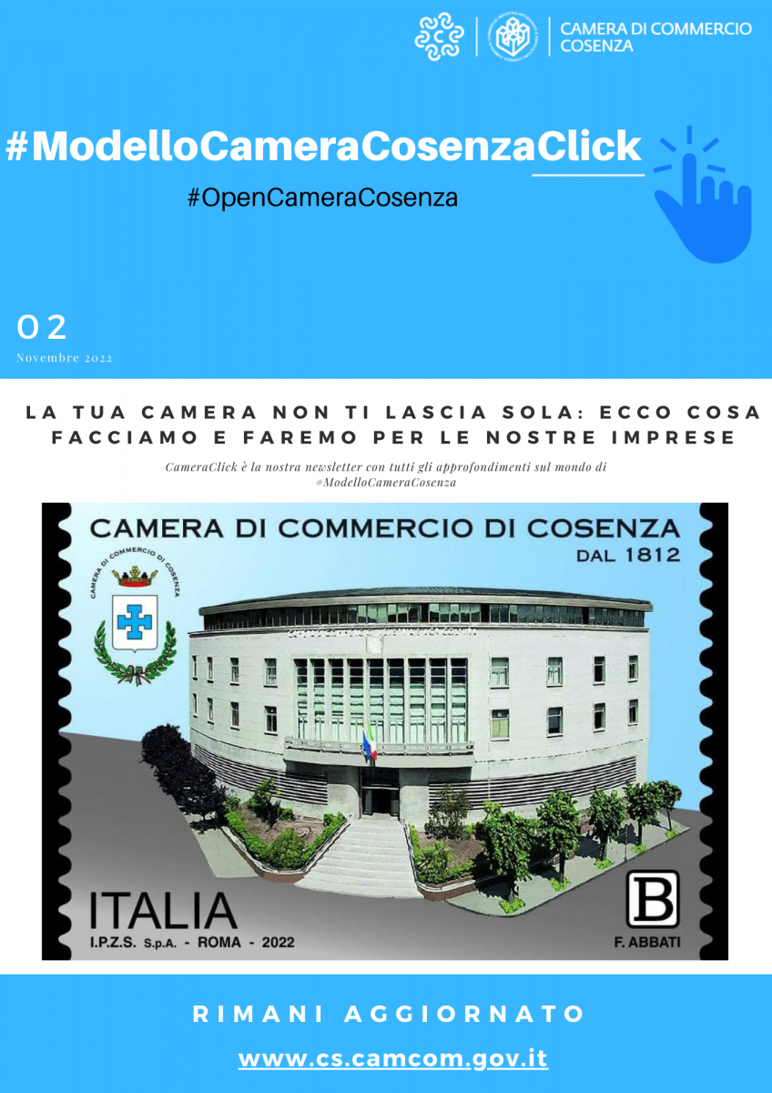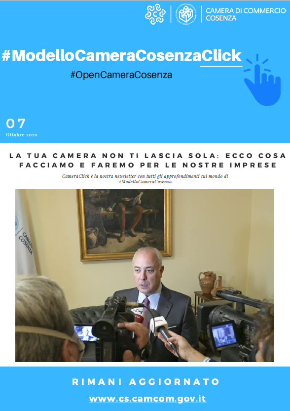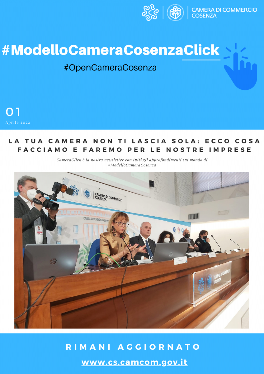 La Camera di Commercio di Cosenza è lieta di presentarti CameraClick, la newsletter che ti porta nel mondo di #OpenCameraCosenza con un semplice click.