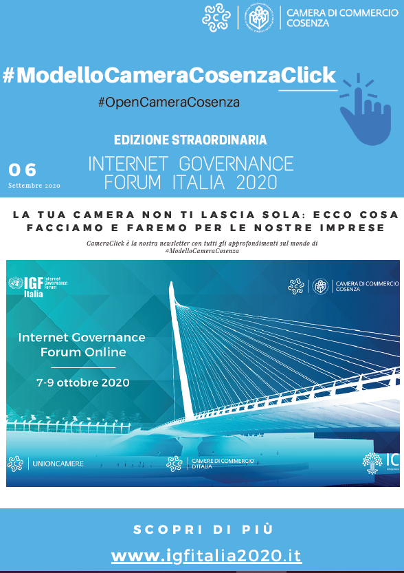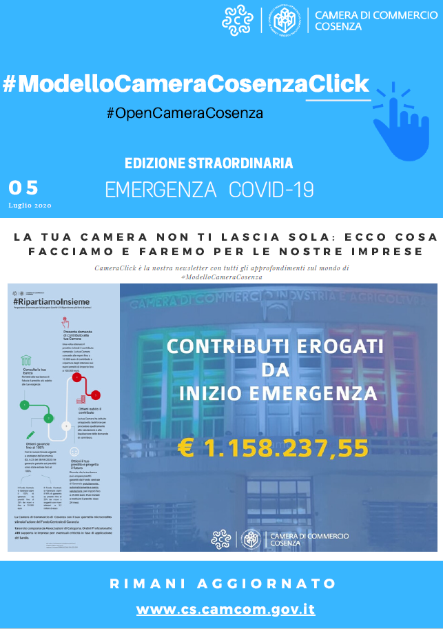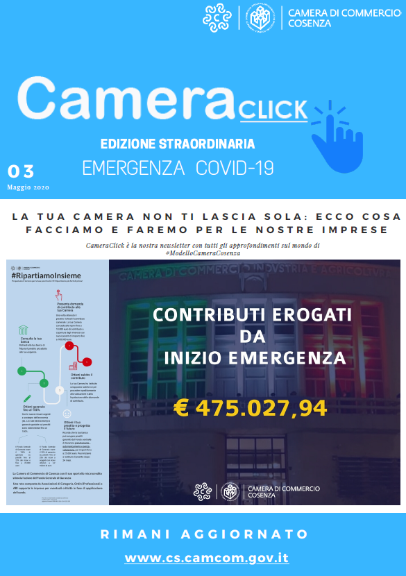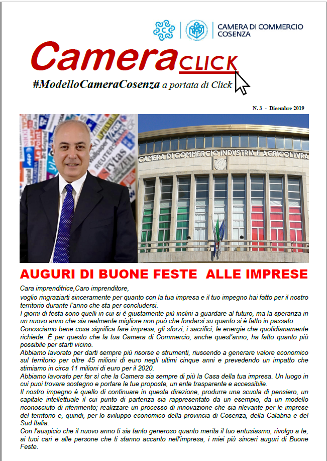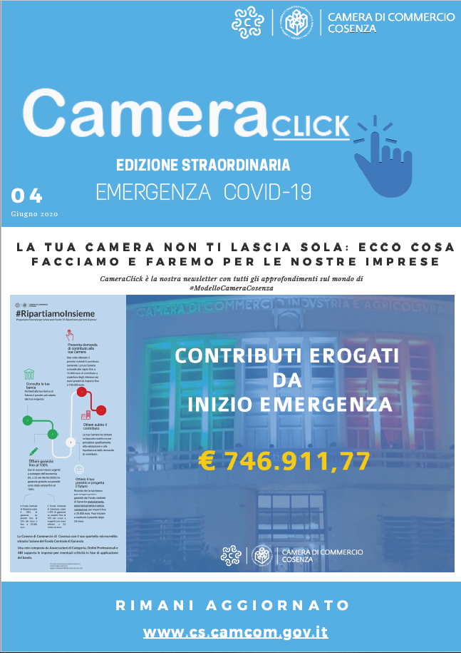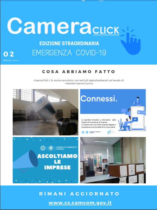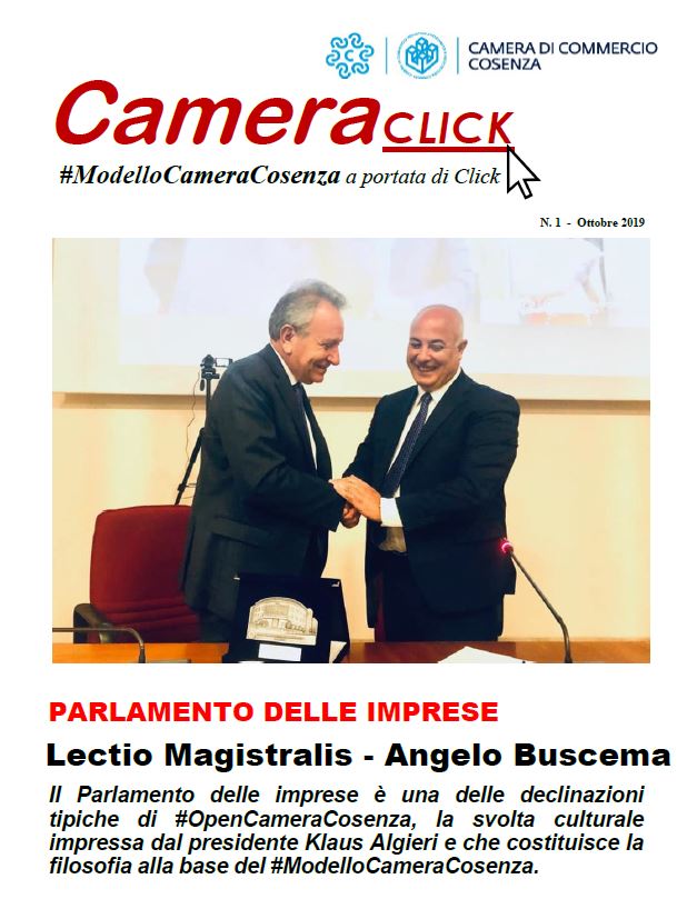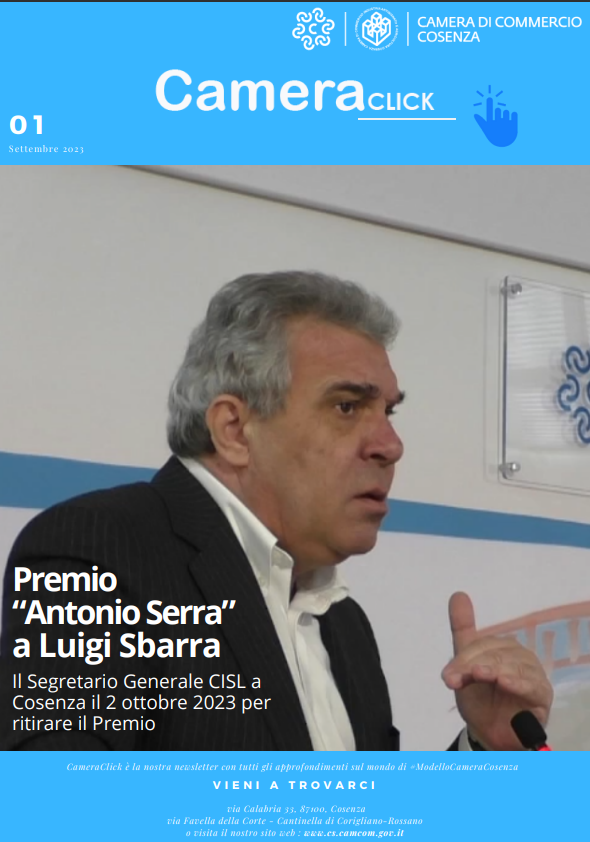 La Camera di Commercio di Cosenza è lieta di presentarti CameraClick, la newsletter che ti porta nel mondo di #OpenCameraCosenza con un semplice click.