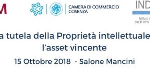 “La tutela della proprietà intellettuale: l’asset vincente” è il tema del workshop in programma lunedi 15 ottobre 2018, dalle ore 14, nel Salone Mancini della Camera di Commercio di Cosenza.
