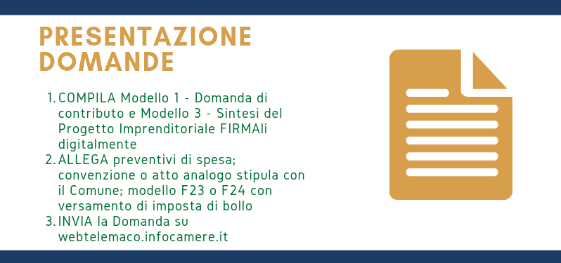 Puoi inviare la Domanda a partire dalle ore 09:00 del 15 luglio 2019. Bando e Modulistica sono disponibili tra gli Allegati.